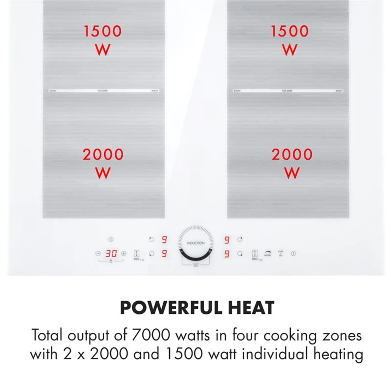 - Gesamtleistung: 7000 W (2 x 2000 W & 2 x 1500 W)