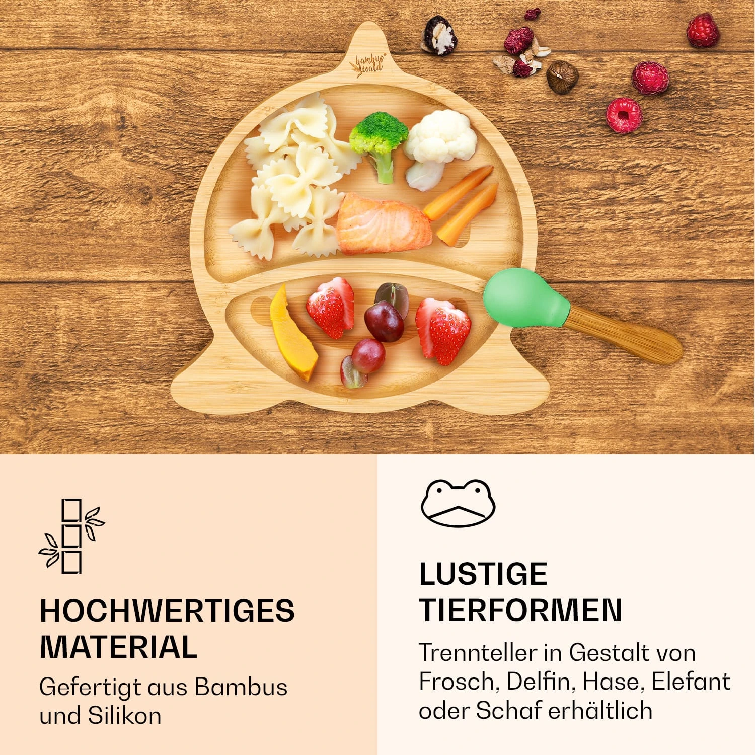 Kindergeschirr Bambusteller & Löffel 250 Ml Inkl. Saugnapf 18 X 18 Cm