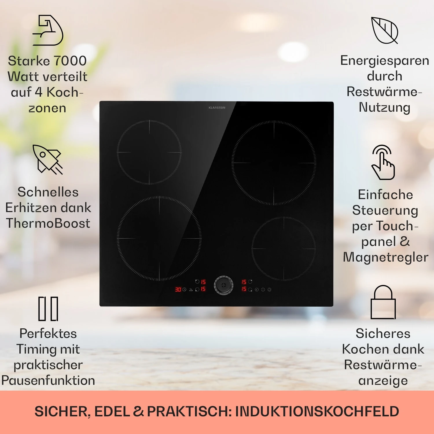 Magnichef 4 Einbaukochfeld Induktion 4 Zonen 7000W Glaskeramik