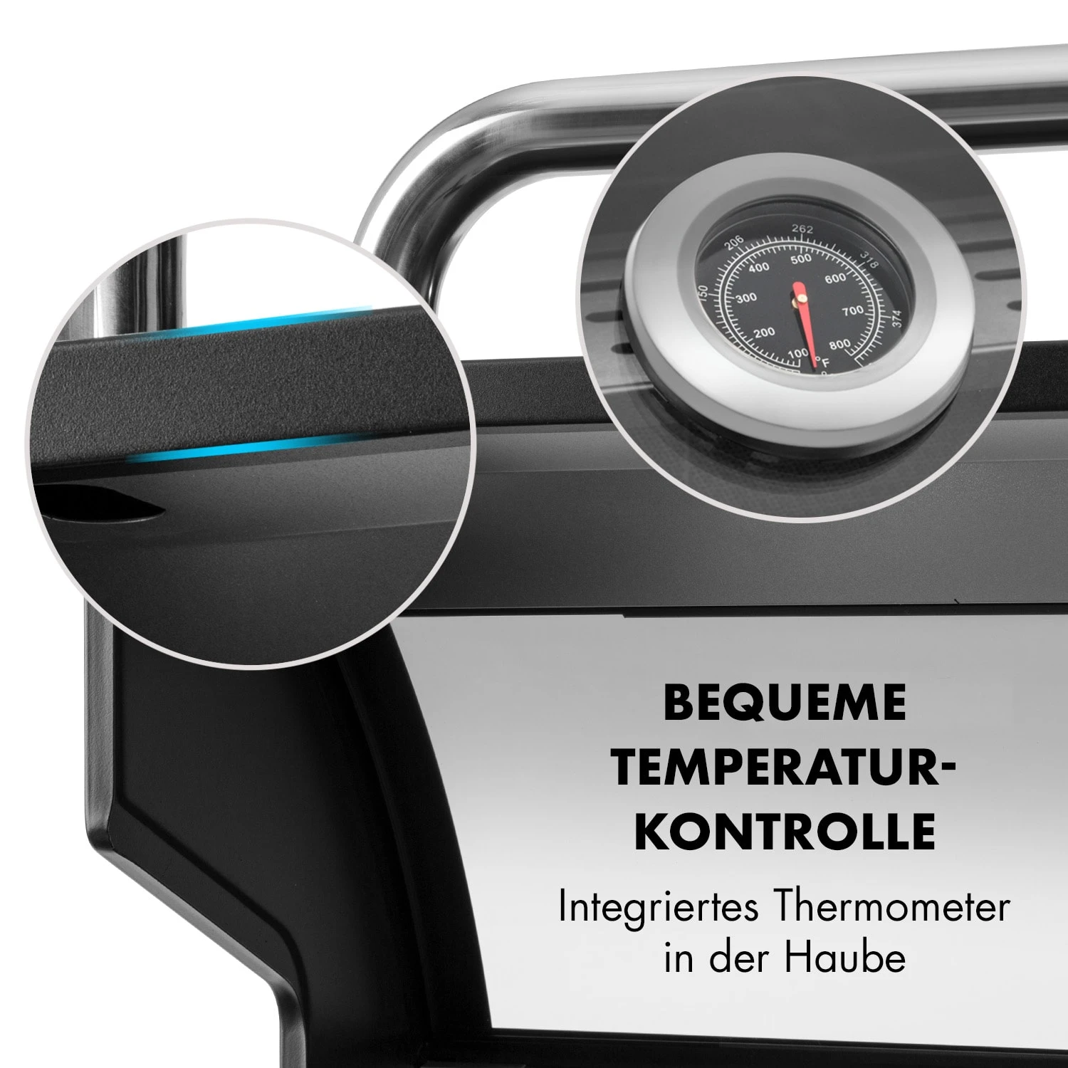 - doppelwandige Haube aus Edelstahl für indirektes Grillen