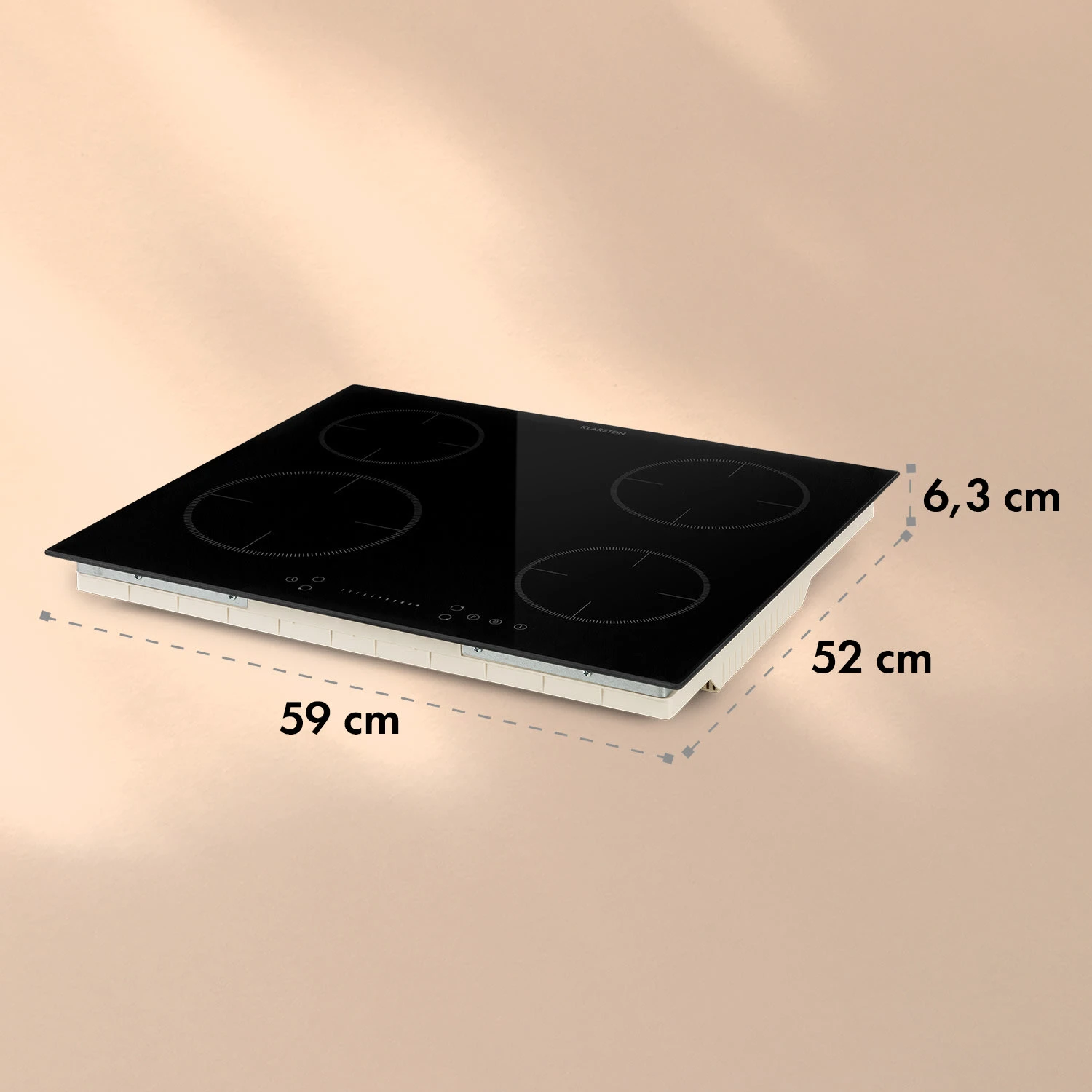 Damit beim Kochen alles reibungslos verläuft, besitzt das Klarstein Virtuosa Einbau-Induktionskochfeld verschiedenste Sicherungen: Eine Abschaltautomatik wird nach 120 Minuten aktiv. Eine Restwärme-Anzeige informiert dich darüber, ob abgeschaltete Kochflächen noch heiß sind. Außerdem kann eine Kindersicherung aktiviert werden, um versehentliches Verändern der Kocheinstellungen zu verhindern.