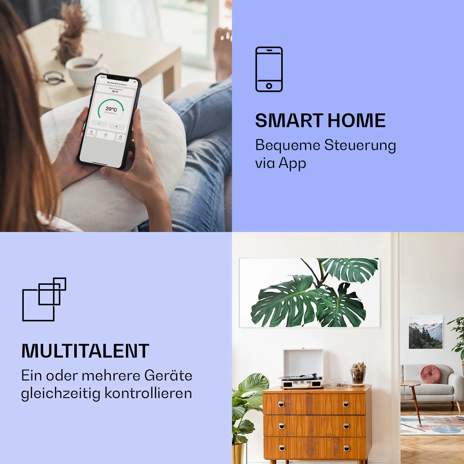 Wonderwall Air Art Smart Infrarotheizung Grünes Blatt 120x60cm 700W